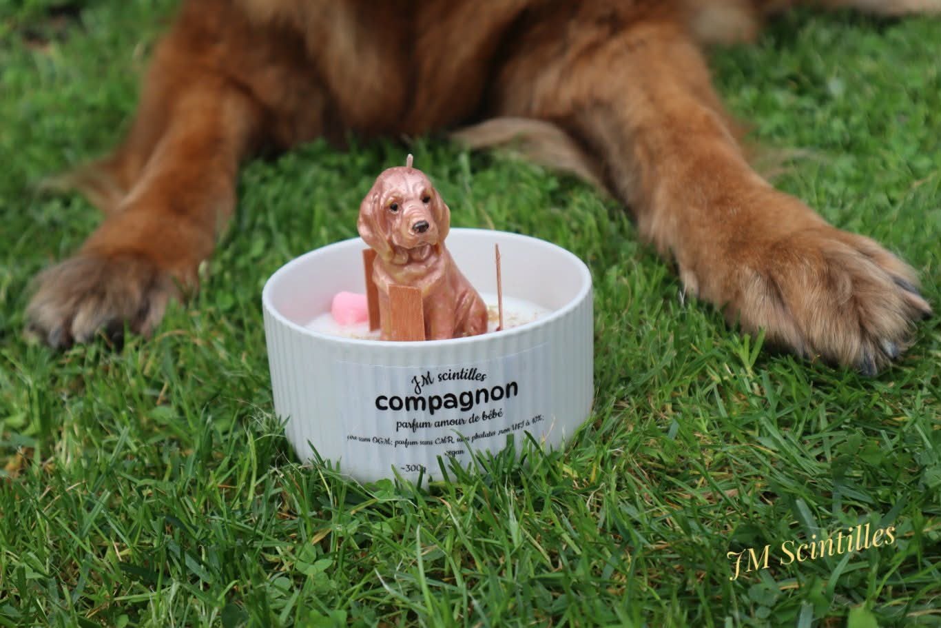 La bougie compagnon dévoile sa fragrance amour de bébé aux notes de pureté et de douceur. Son univers réconfortant invite à un voyage olfactif au coté de son animal.